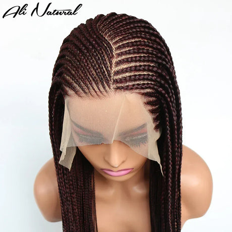 Ombre Burgundy 13x6 Lace Frontal Braids Wig Synthetic