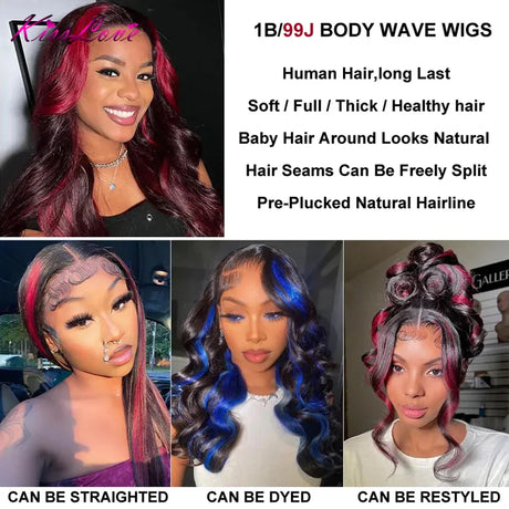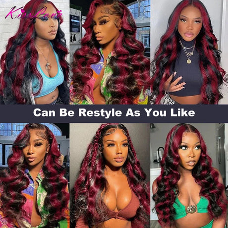 1B99J Burgundy Transparent Lace Front Human Hair Wig