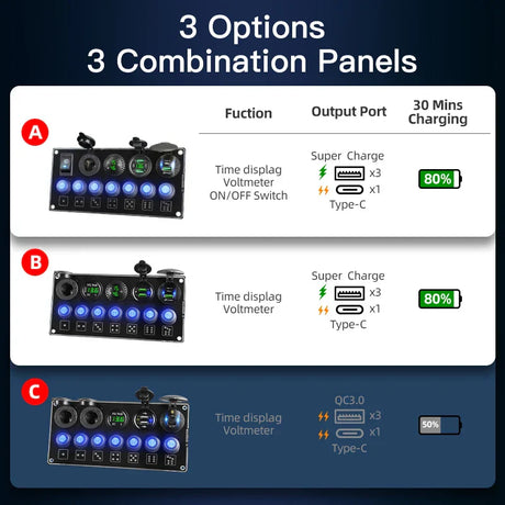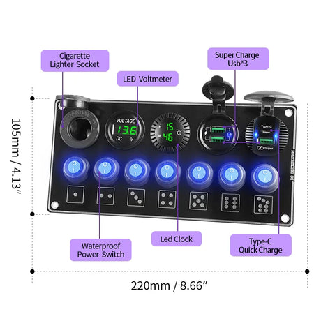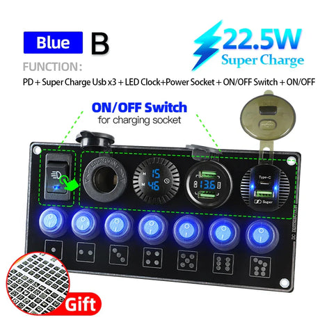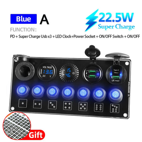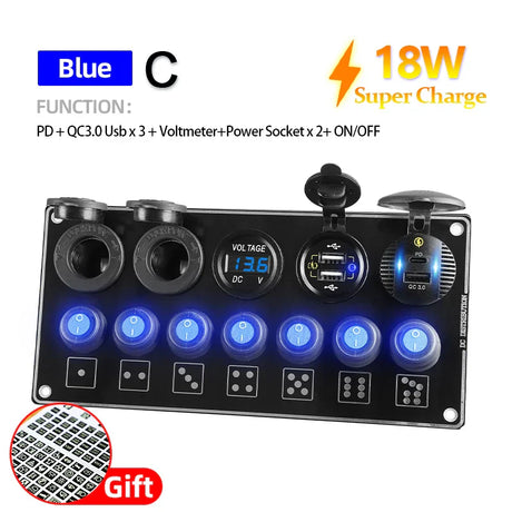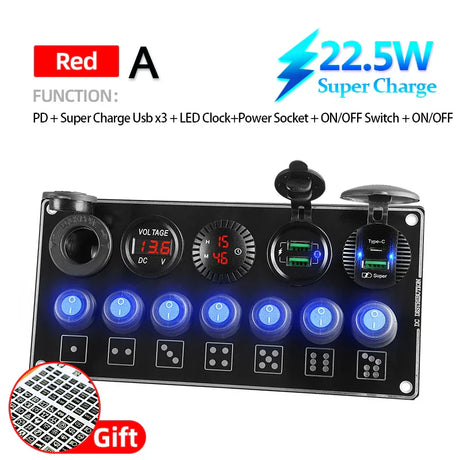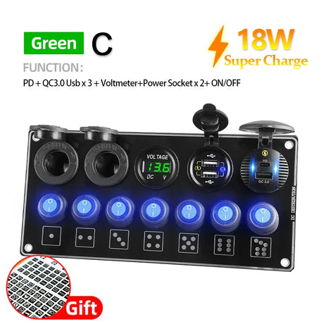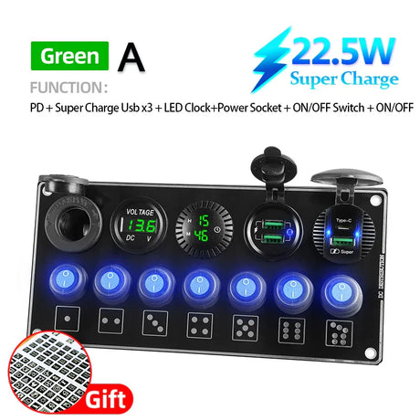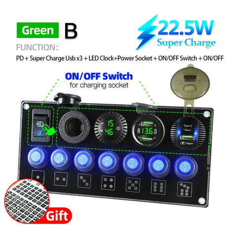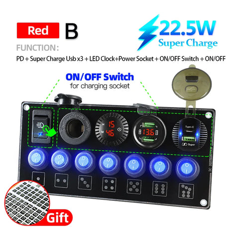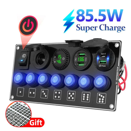 12V 7 Gang ONOff Rocker Toggle Switch Panel