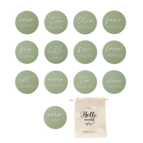 1Set Green Acrylic Baby Growth Milestone Markers for 0-12 Months Newborn Photography Accessories