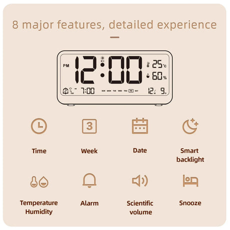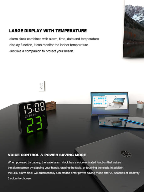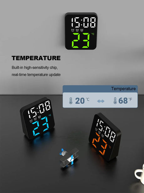 Digital Alarm Clock for Bedrooms with Temperature Adjustable