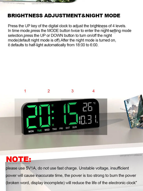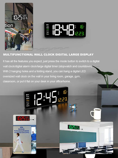 9.0inch Large Digital Wall Clock Temperature and Date