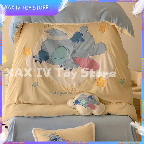 Cartoon Kawaii Disney Stitch Milk Velvet Four-piece Warm