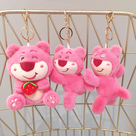 24Pcs 13-15cm Disney Lotso Strawberry Bear Plush Keychain