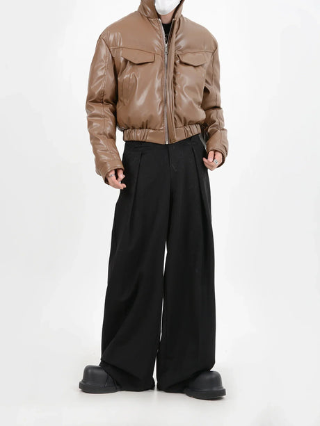 Dark Avant-Garde Style Clothes Pu stand-up Collar Leather