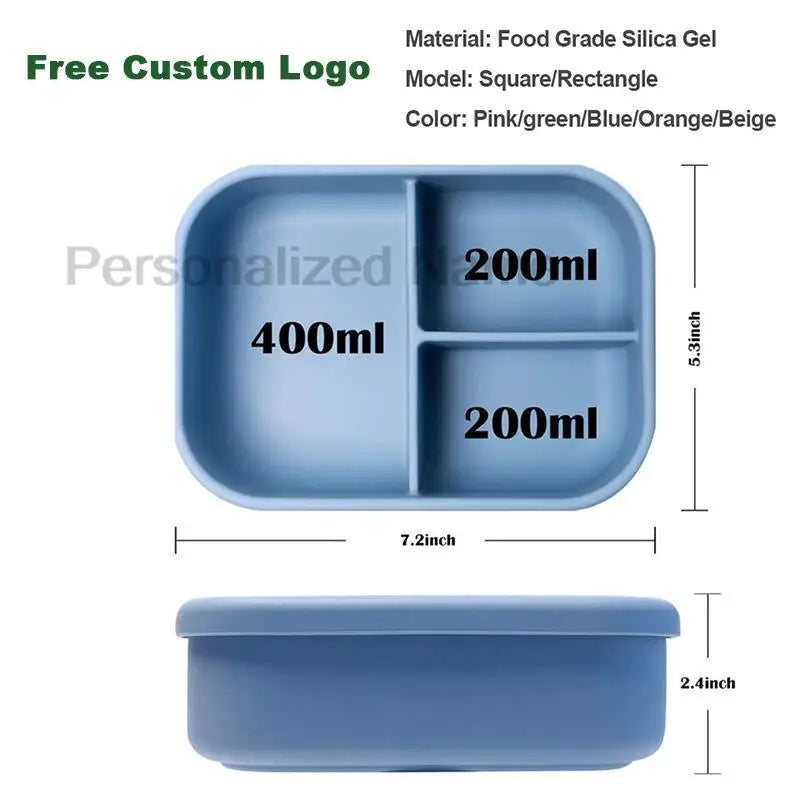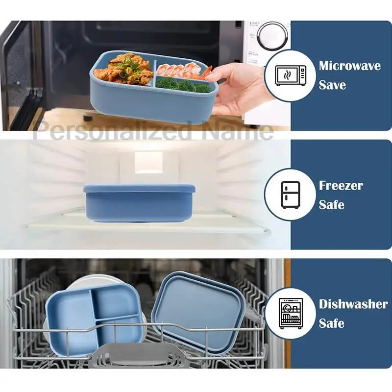 Silicone Lunch Box 3 Compartment Personalized Name Bento