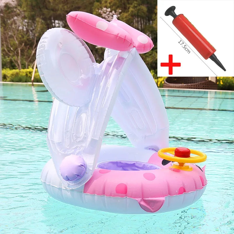 Baby Swimming Float Ring Roof Inflatable Double Raft
