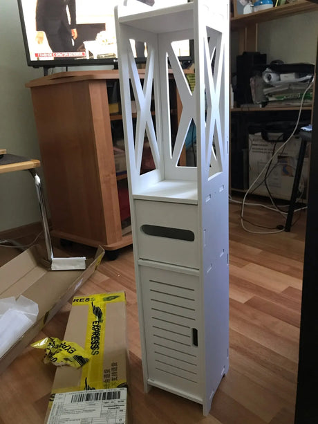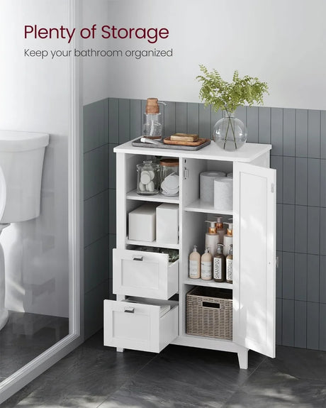 5-Tier Wooden Bathroom Floor Cabinet, White Storage Shelf