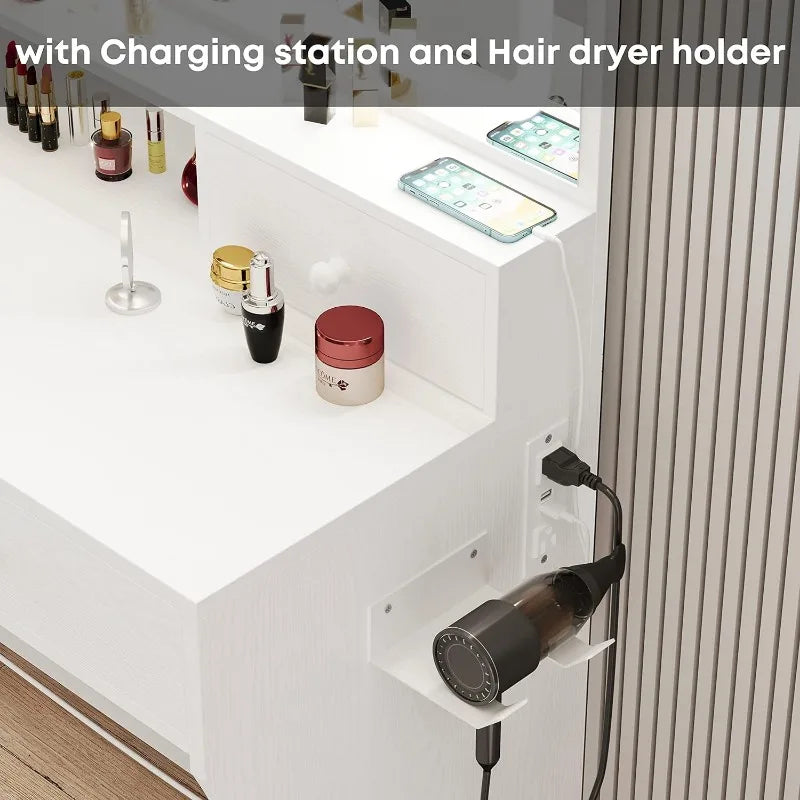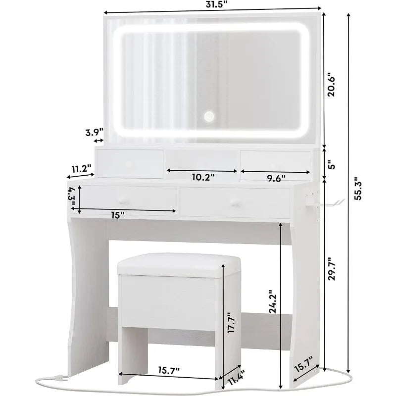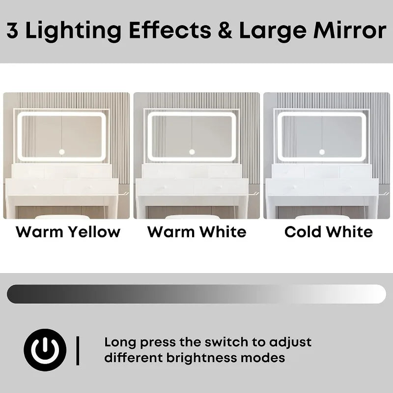 LIKIMIO Vanity Desk with LED Lighted Mirror &