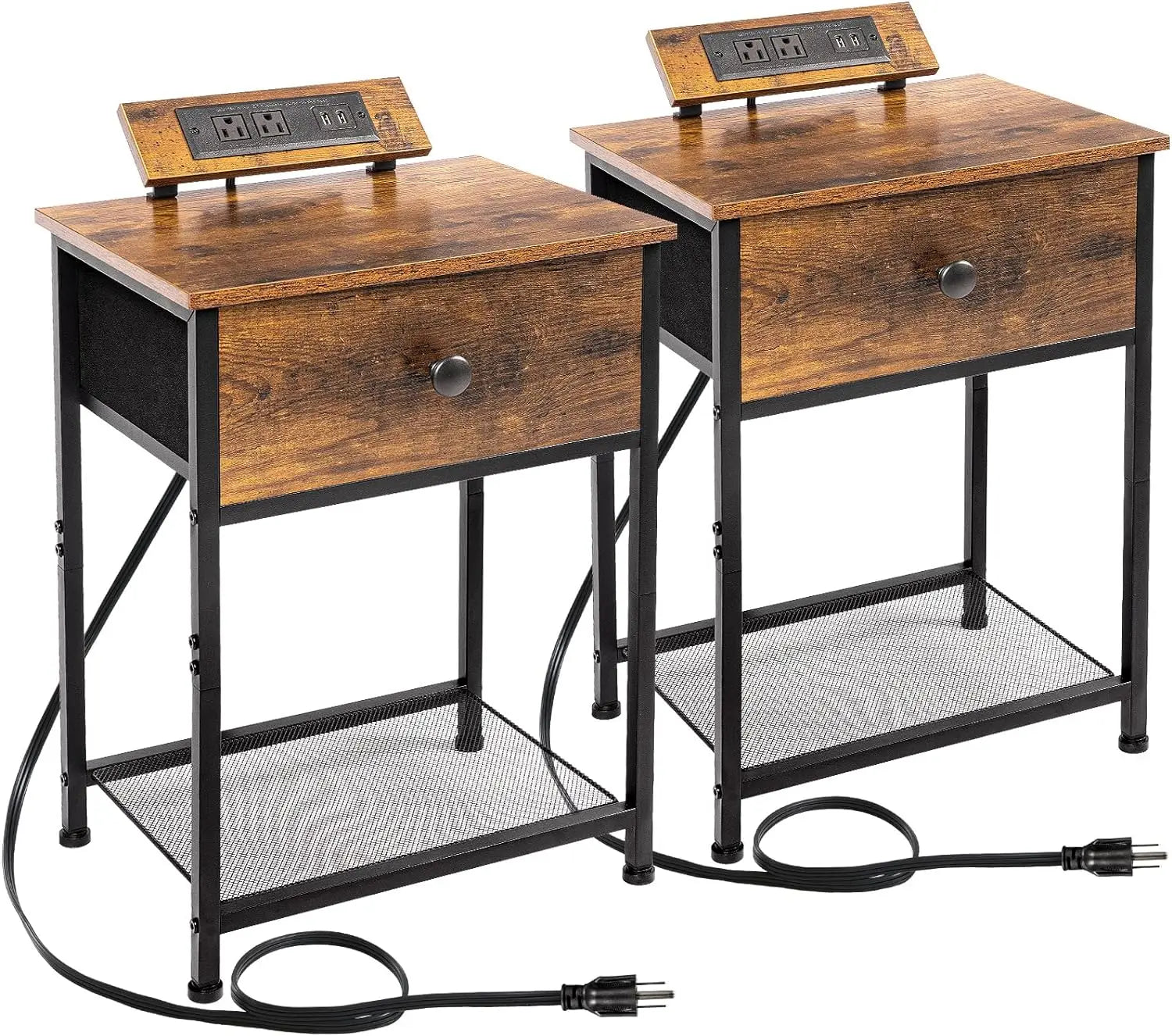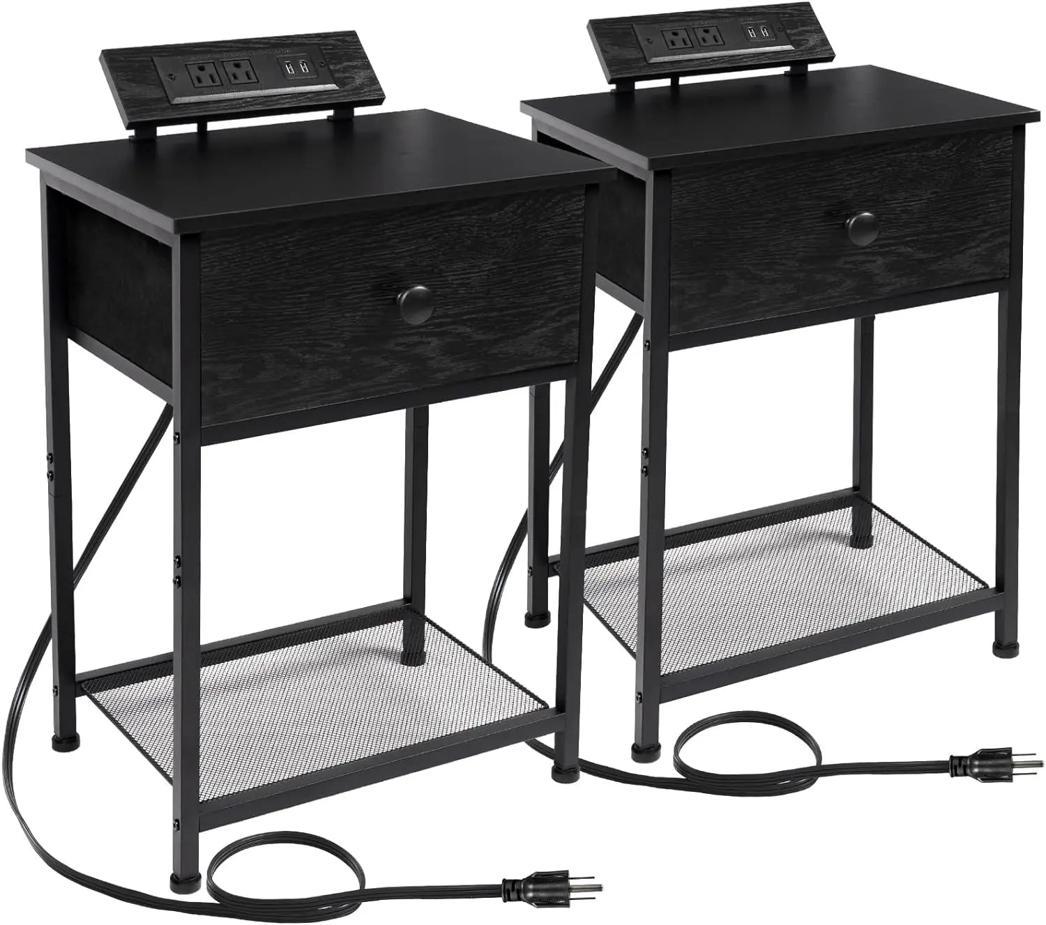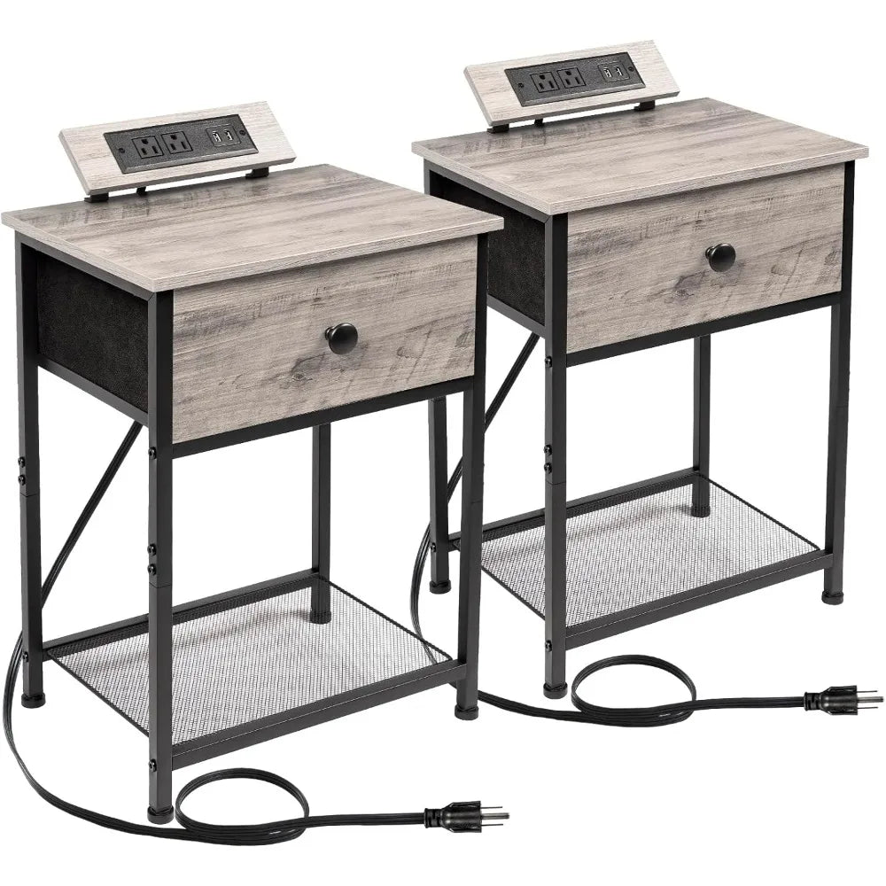 Nightstands Set of 2, Small Night Stands with - Dark Gray / United States / VIP Price is backordered and will ship as soon as it is back in stock.