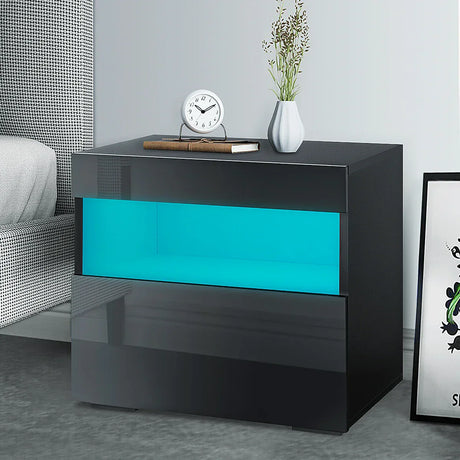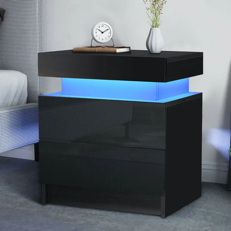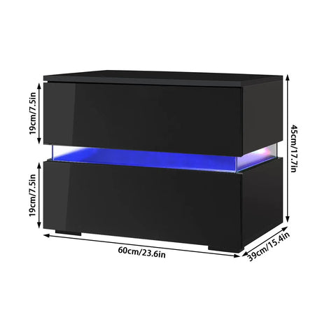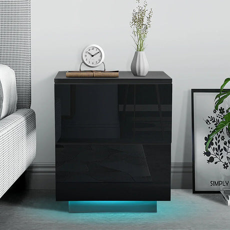 Modern Luxury LED Light Nightstand w/2 Drawers Organizer