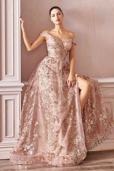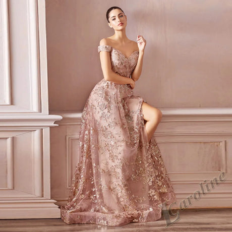 Caroline Elegant Off Shoulder Evening Dress Vneck Glitter