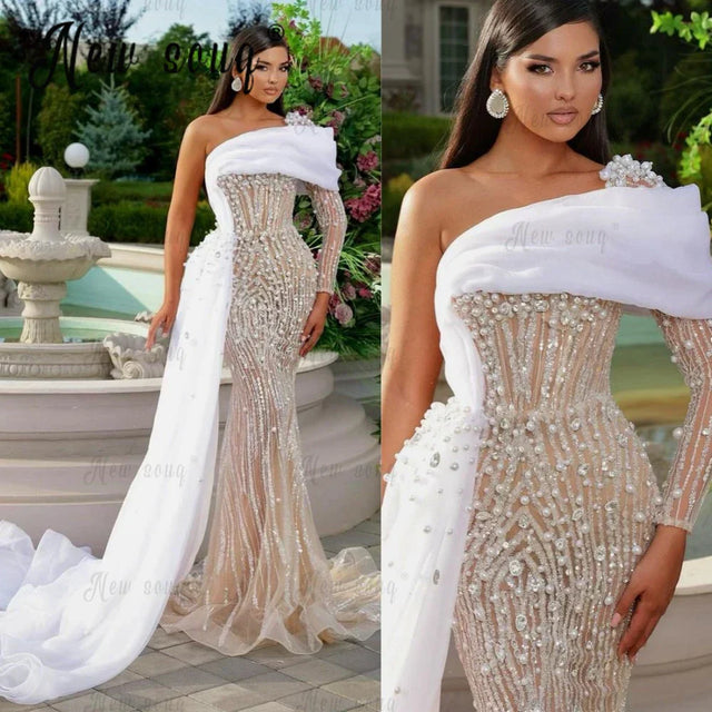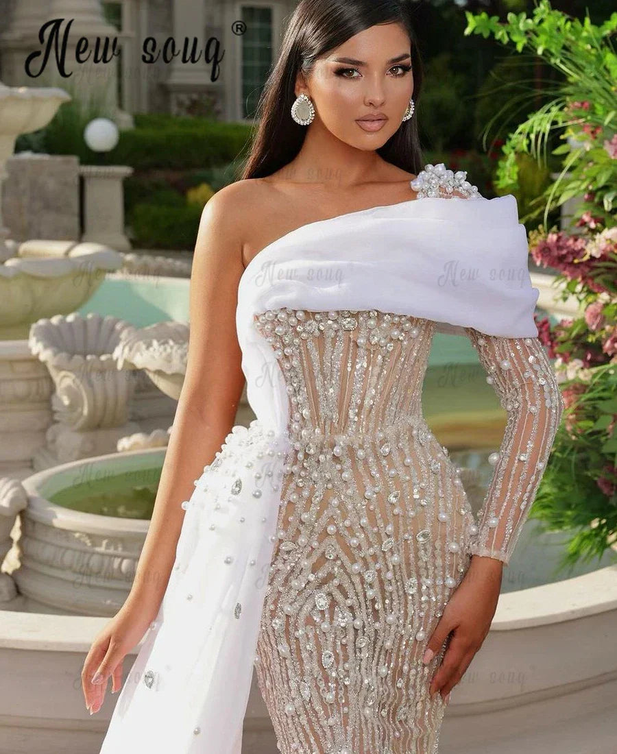 Gorgeous Pearls Beaded Party Dress Off Shoulder Side - Custom Made / Custom size / VIP Price is backordered and will ship as soon as it is back in stock.