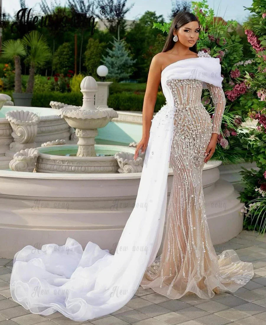 Gorgeous Pearls Beaded Party Dress Off Shoulder Side