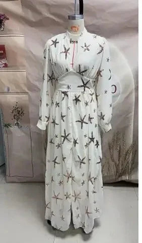 Womens Print Chiffon Party Dress Lantern Sleeve 2024