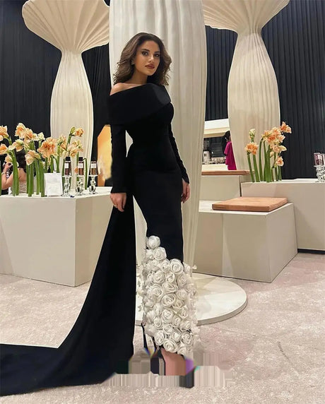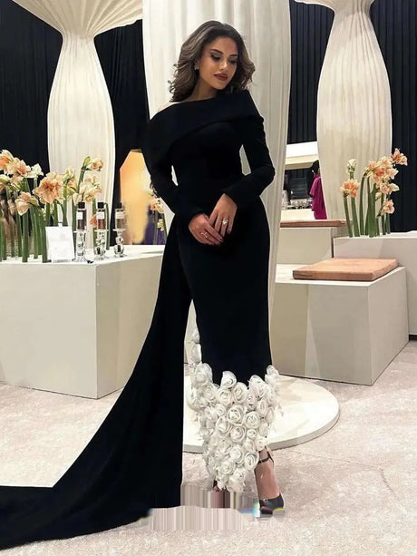 Boat Neck Prom Dress Long Sleeves Ankle Length