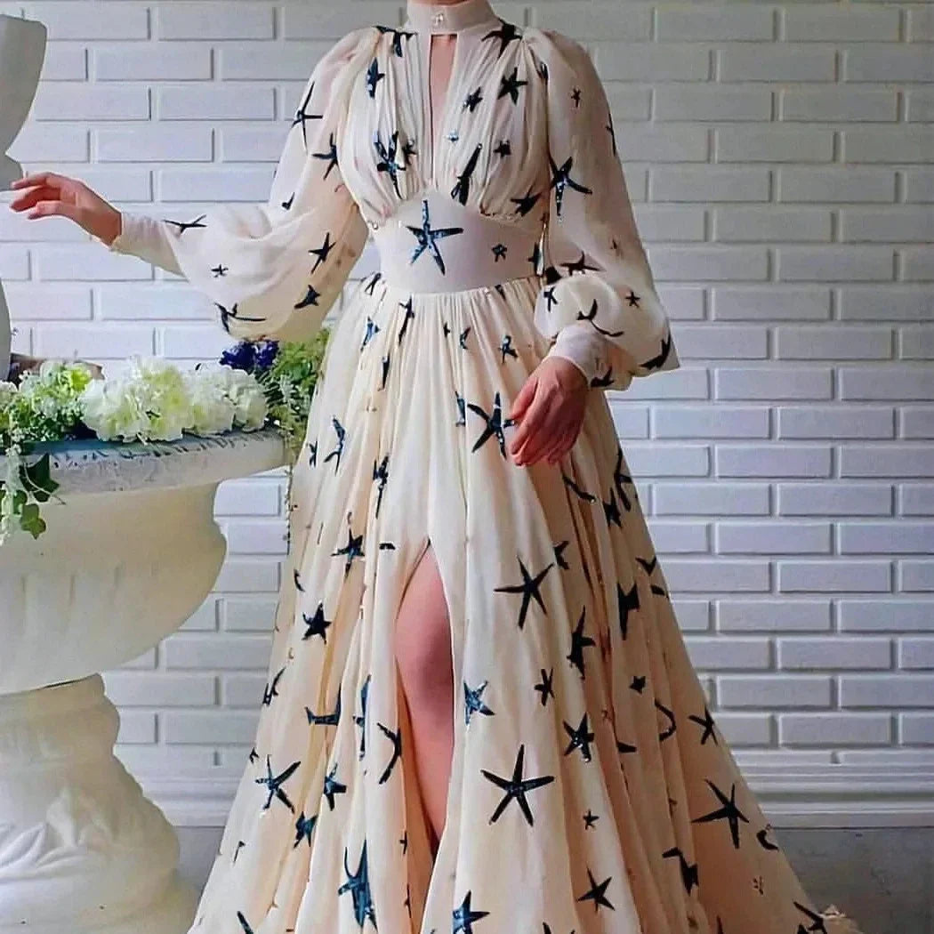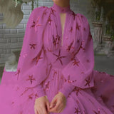 Womens Print Chiffon Party Dress Lantern Sleeve 2024