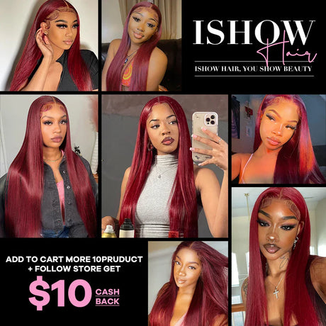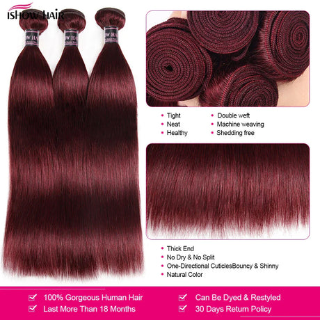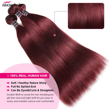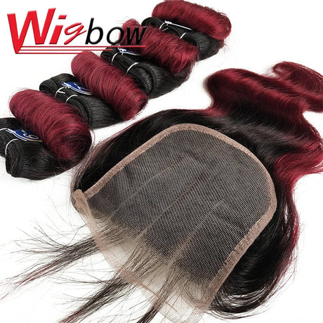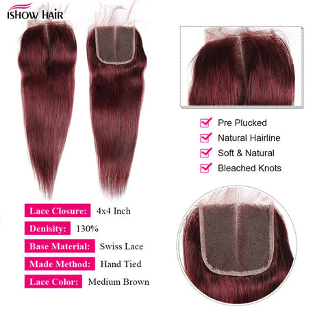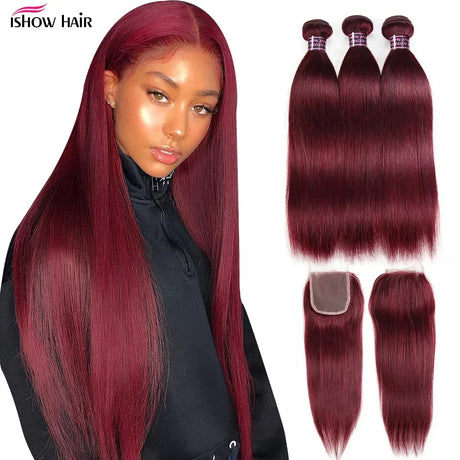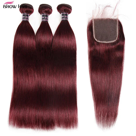 99J Straight Bundles With Closure Burgundy Human Hair