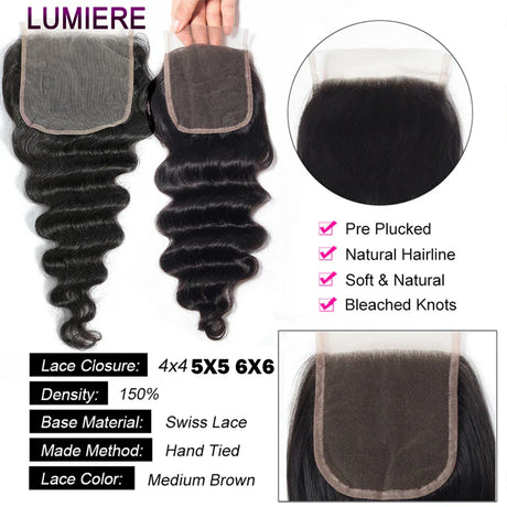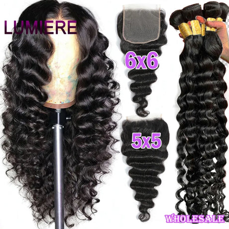 4x4/5x5/6x6 Lace Closure with Bundles Deep Wave Human