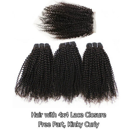 Afro Kinky Curly Bundles With Closure Transparent 4x4