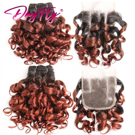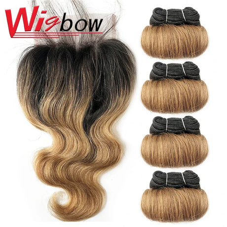 6+1/Lot Brazilian Hair Weaving With Closure Ombre Bouncy