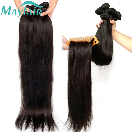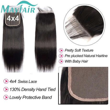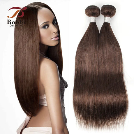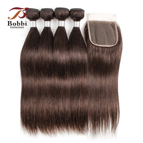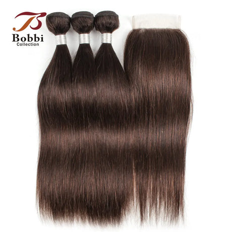 Brown Straight Human Hair 2/3 Bundles with 4x4
