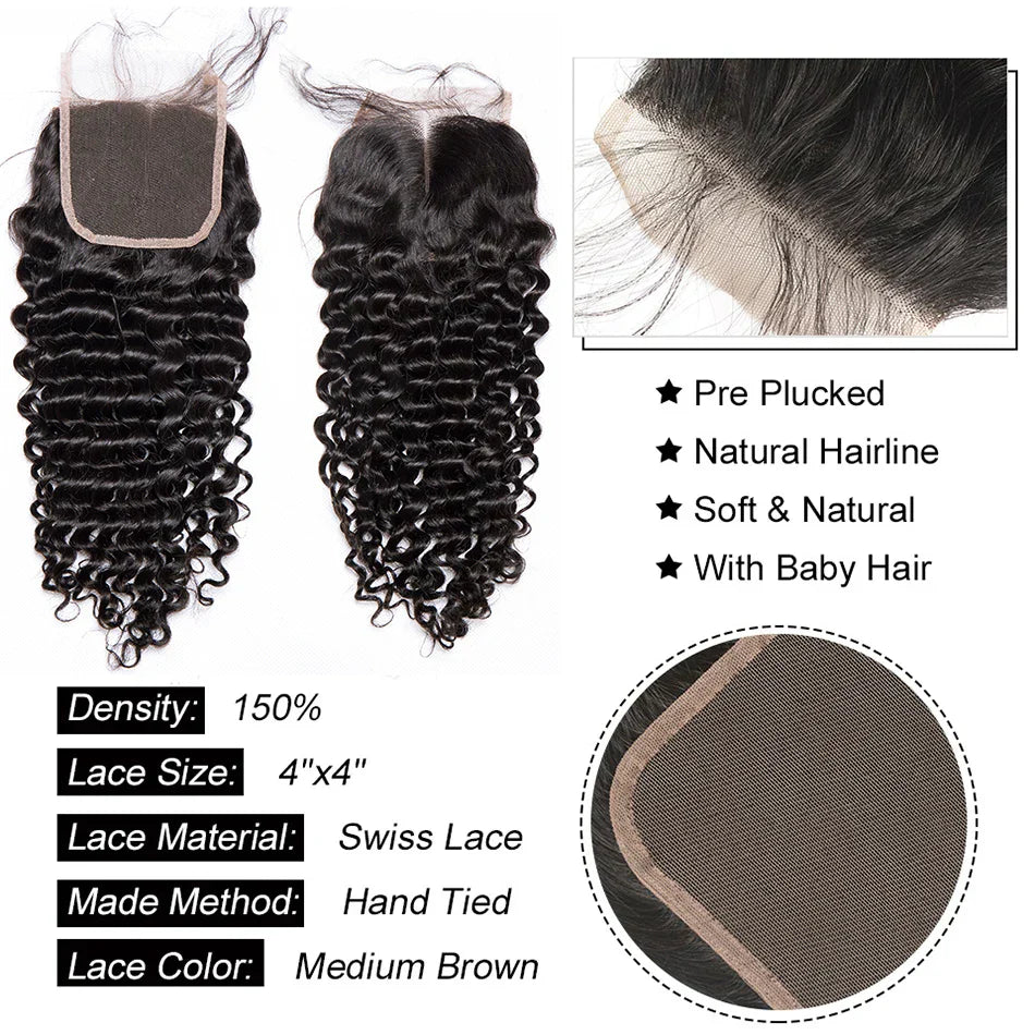 Deep Wave Brazilian Hair Weave Raw Bundle Human - 26 26 26 Closure20 / Remy Hair / VIP Price is backordered and will ship as soon as it is back in stock.