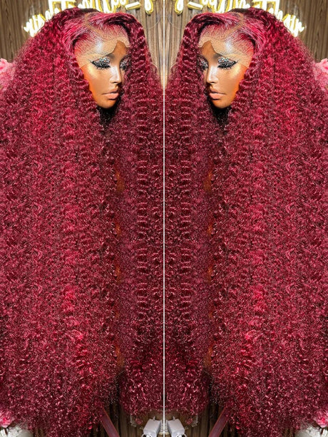 30 40 Inch Curly 99j burgundy 13x4 Lace