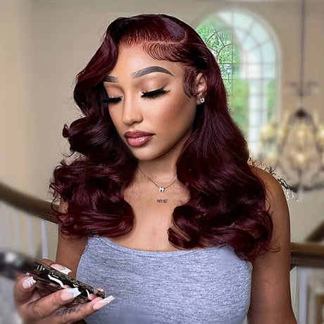 13x6 99J Burgundy Lace Front Wig Body Wave
