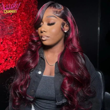 180% Density Highlight 1B Burgundy 13x6 Lace Frontal