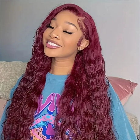 250% Brazilian 99J Burgundy 13x4 Deep Wave Frontal