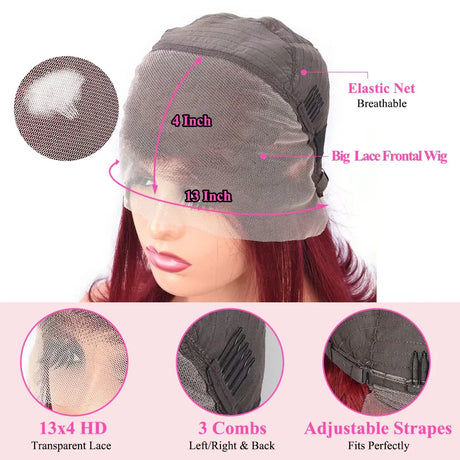 13x4 Lace Burgundy Short Bob Wig Human Hair