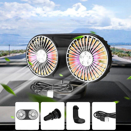 Car Fan New Dualhead USB Electric Fan Multifunction
