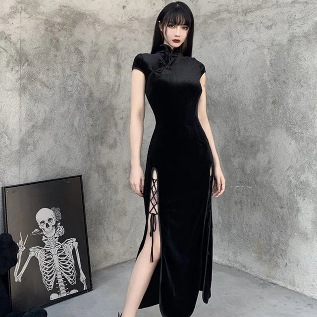 2024 Vintage Black Bandage Chinese Style Cheongsam High - black / S / VIP Price is backordered and will ship as soon as it is back in stock.