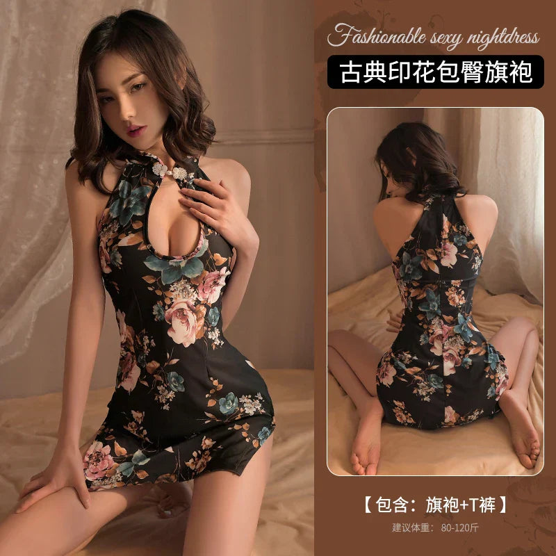 Sexy Hot Girl Retro Print Temptation Lingerie Hollow