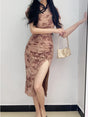 WOMENGAGA Retro Cheongsam Summer High Slim Elegant Flower