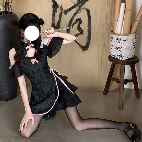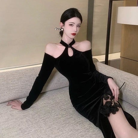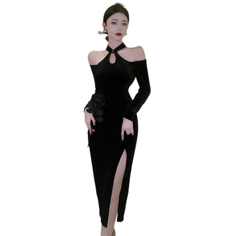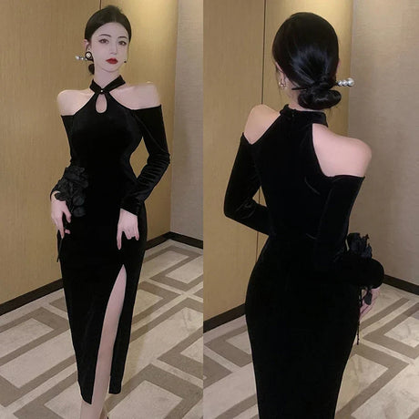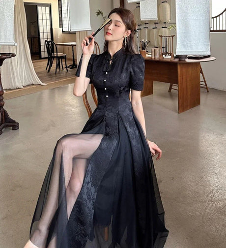 Women Fashionable New Cheongsam Black Advanced Mysterious Dress