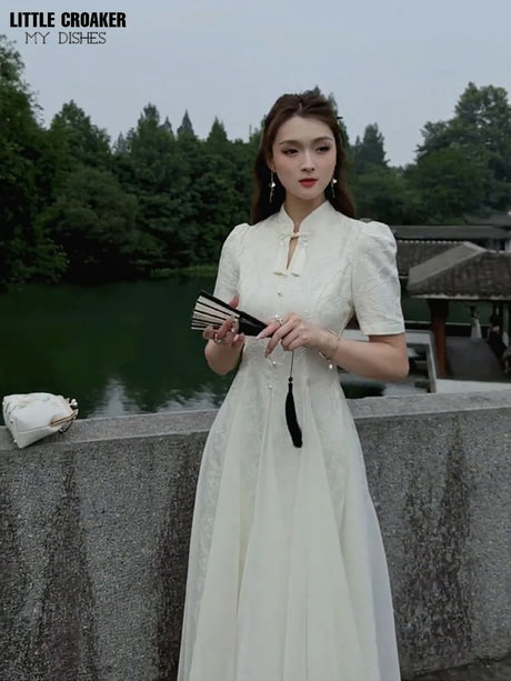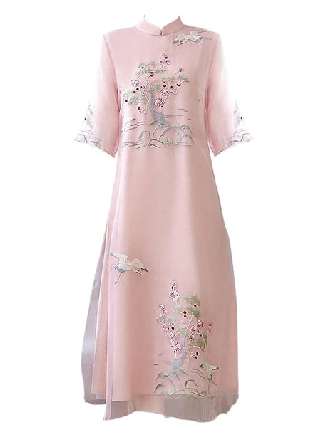 Women Cheongsam Improved Dress Retro Elegant Embroidery Long