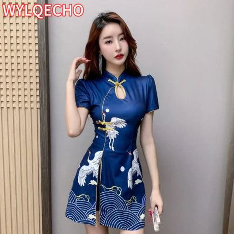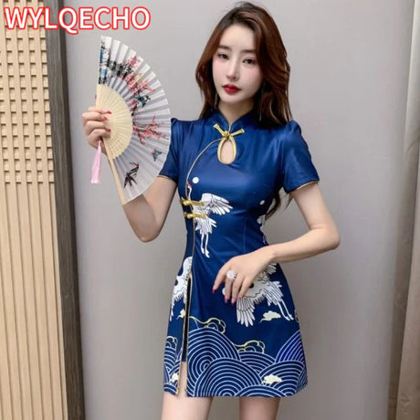 Vintage Chinese Traditional Qipao Cheongsam Sexy Mini Slim
