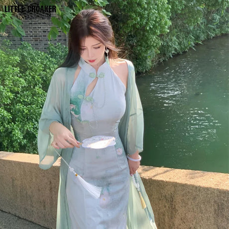 Women Waiting for Yanyus New Chinese Sleeveless Qipao