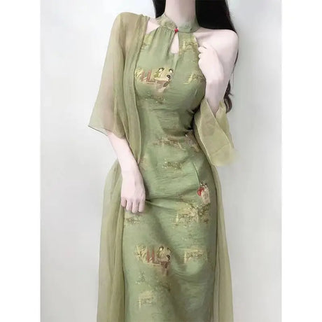Women Chinese Style Retro Improved Temperament Printing Cheongsam