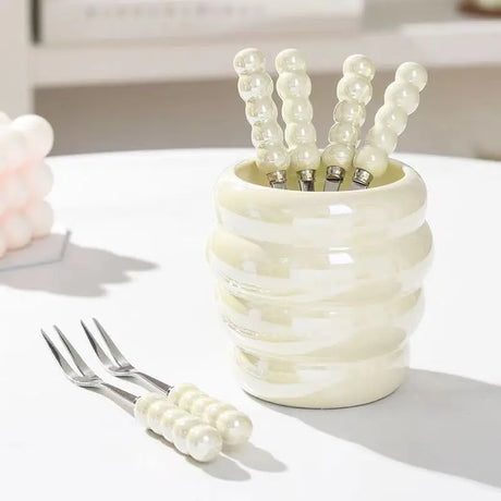 Ceramic Fruit Fork Organizer Desktop Kitchen Storage Stainless