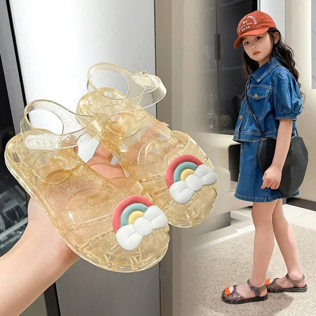 Girls Sandals Summer New Rainbow Bow Kdis Cute Jelly Shoes Fashion Princess Shoes Beach Girls' Shoes Infant Girl‘s Sandal