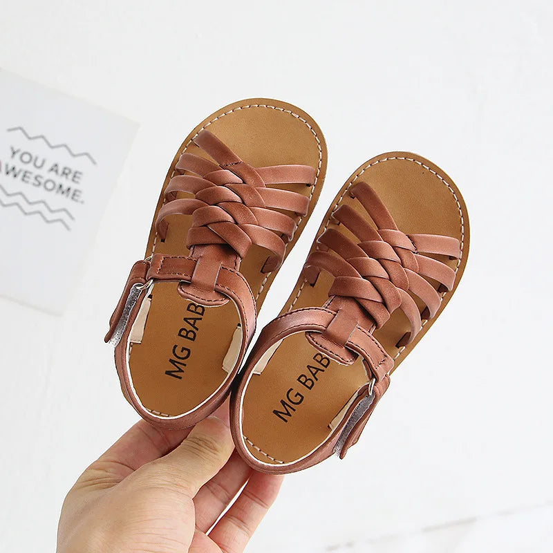 Unishuni Toddler Girls Boys Leather Sandals Infant Children’s Shoes Kids Summer Beach Shoes Basic Cross-Tied Strappy Sandal 2023