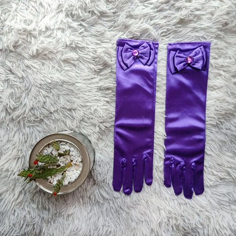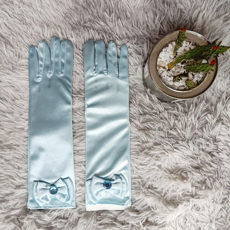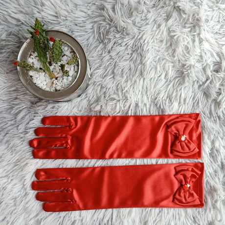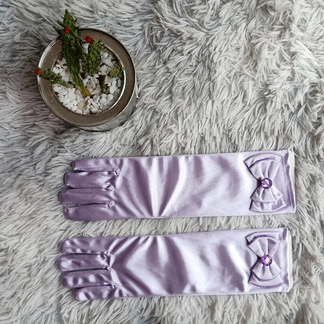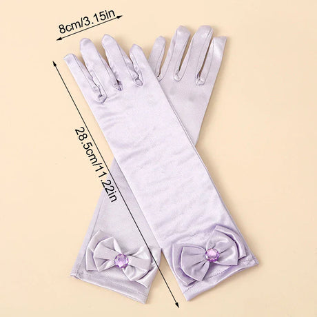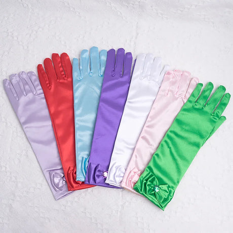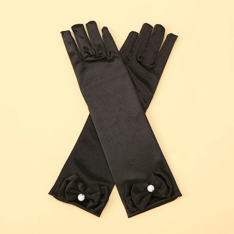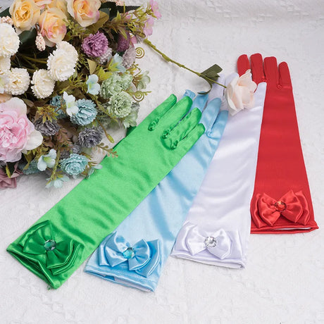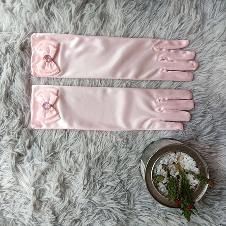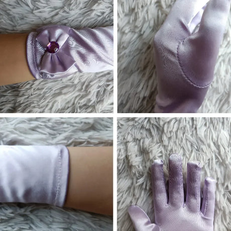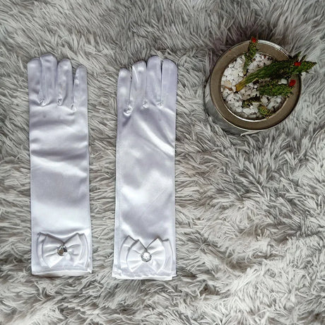 1 Pair Bow Satin Gloves for Kids - Stage Dance & Wedding Accessories