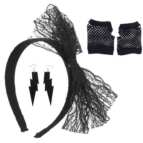 80S Headband Lace Party Accessories Gloves Costume Earrings