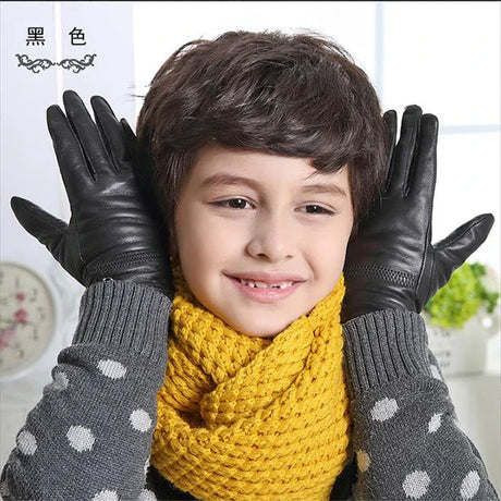 Children Autumn Sheepskin Plus Velvet Thick Gloves Boys