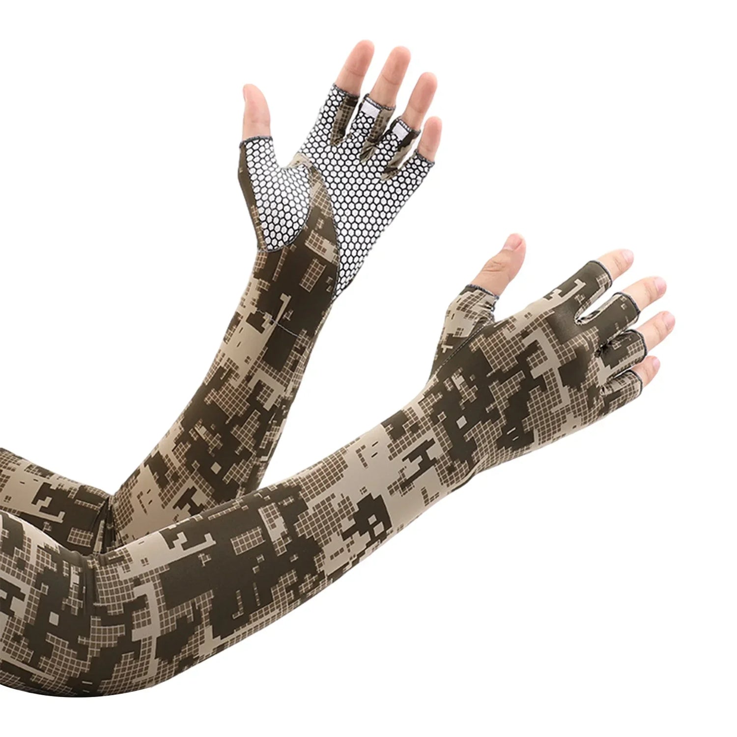 Men’ s Cycling Gloves, Sun-Resistant Floral Print Half-Finger Gloves with Oversleeve for Boys - Desert Camouflage / VIP Price is backordered and will ship as soon as it is back in stock.
