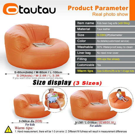 OTAUTAU 2ft Kids Sofa Faux Leather Mini Bean