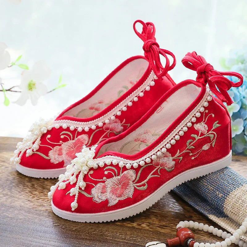 The New Women Traditional Chinese Style Hanfu Boot Embroidered Cloth Shoes Wedding Bride Old Beijing Retro Short Boots Footwear